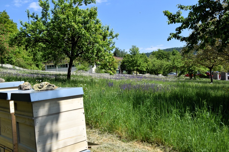 Nachhaltigkeit bedeutet für uns auch, Lebensräume für Tiere und Pflanzen zu erhalten und zu fördern. Deshalb haben wir auf unserem Betriebsgelände eine große Blühwiese angelegt, die zahlreichen Insektenarten einen wertvollen Lebensraum bietet. Hier finden Bienen, Schmetterlinge und andere Bestäuber Nahrung und Schutz. Besonders stolz sind wir auf unsere eigenen Bienenstöcke, die nicht nur für köstlichen Honig sorgen, sondern vor allem einen wichtigen Beitrag zur Bestäubung und damit zum Erhalt der Artenvielfalt leisten. Darüber hinaus haben wir viele Obstbäume gepflanzt. Sie spenden nicht nur Schatten, sondern sind auch Lebensraum für Vögel und Insekten – und sie bringen jedes Jahr frisches Obst hervor. Mit diesen Maßnahmen möchten wir zeigen: Industrie und Natur müssen keine Gegensätze sein. Wir setzen uns aktiv für Biodiversität ein und gestalten unsere Flächen so, dass auch die Natur davon profitiert.